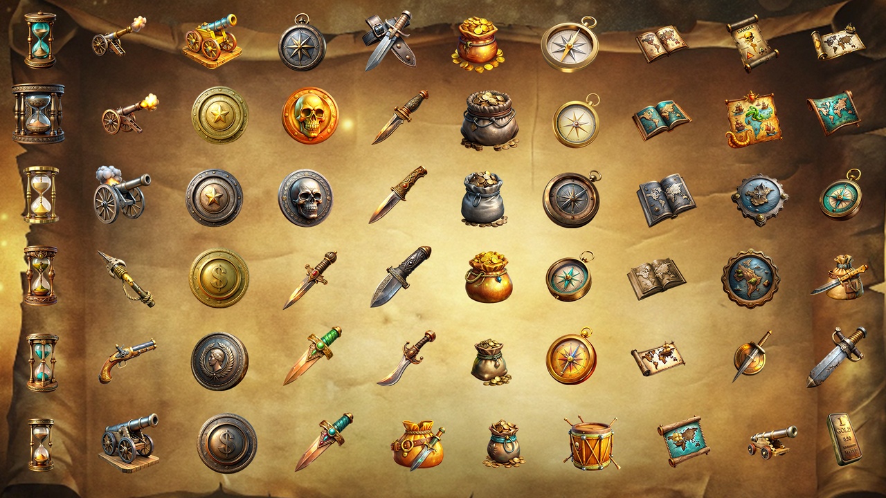 210 Medieval Item Icons Pirates 2D Game Assets